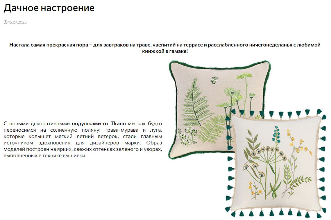 Новые декоративные подушки из коллекции Ethnic и плед из коллекции Terra от Tkano в летней подборке.