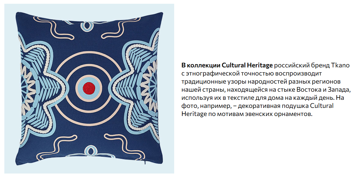 Подушка декоративная по мотивам эвенских орнаментов из коллекции Cultural Heritage от Tkano в подборке декора для дома в азиатском стиле.