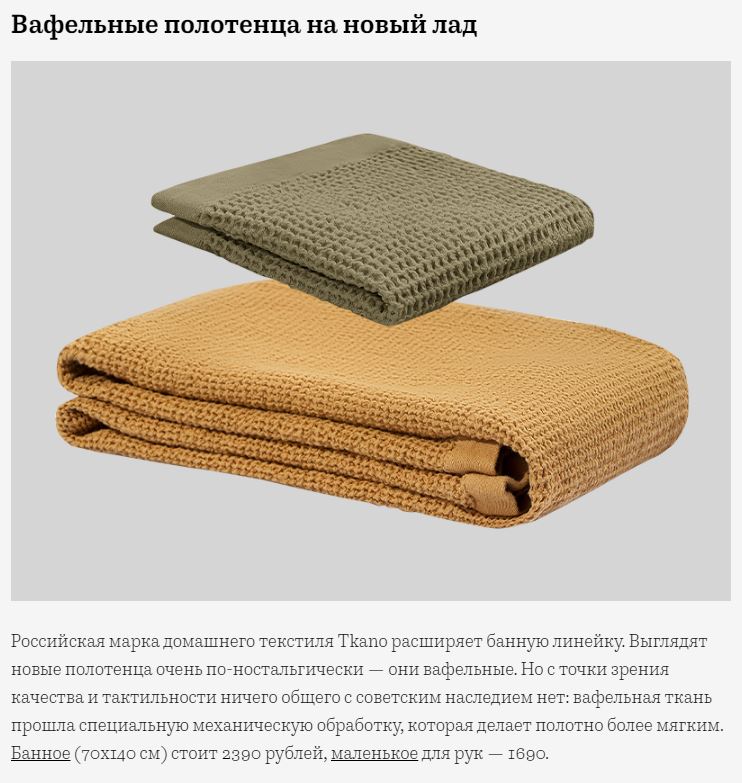 Новые полотенца из умягченной вафли из коллекции Essential от Tkano в подборке новинок недели.