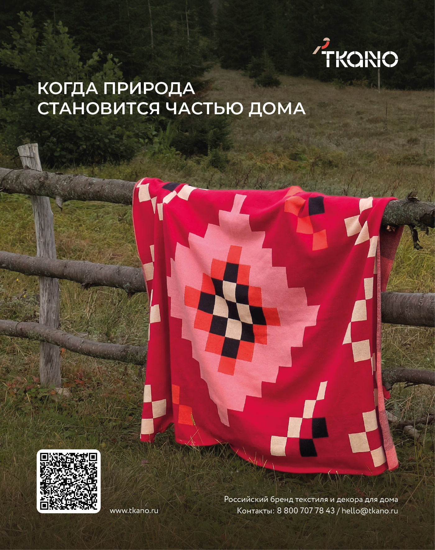 Плед из хлопка по мотивам башкирских орнаментов из коллекции Cultural Heritage от Tkano на странице журнала.