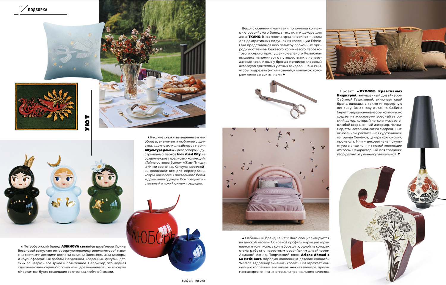 Декоративный текстиль из коллекции Ethnic от Tkano на странице журнала.