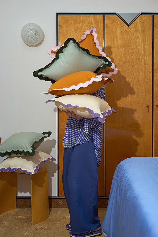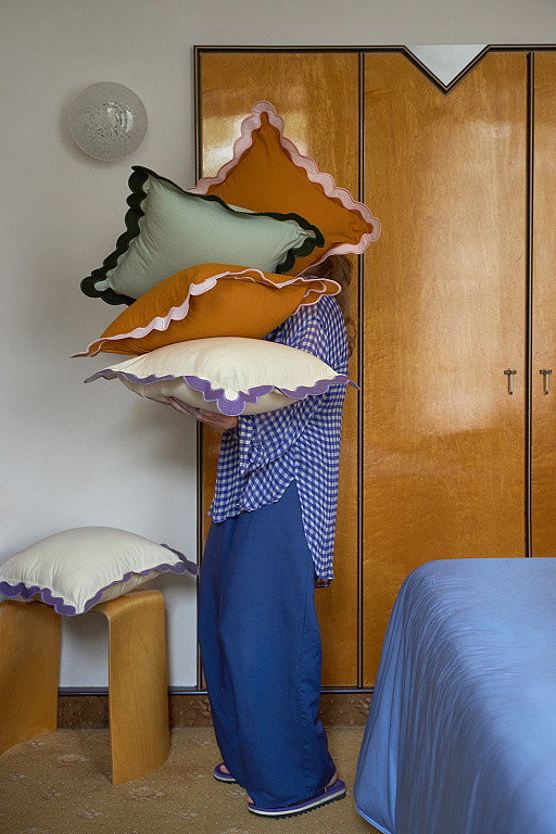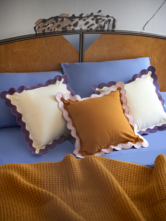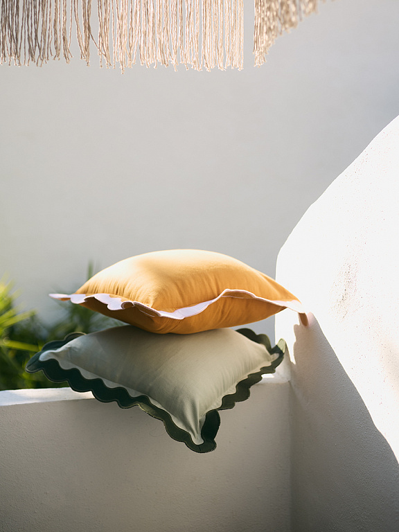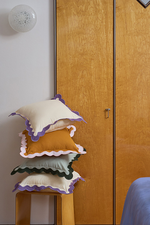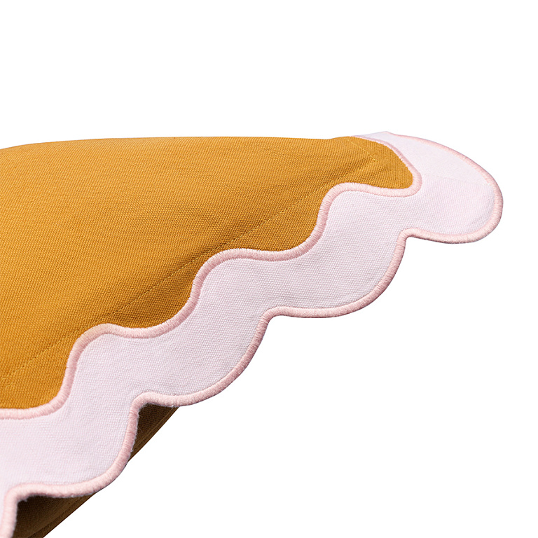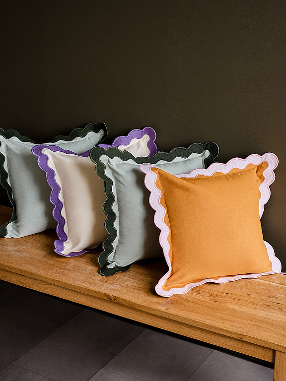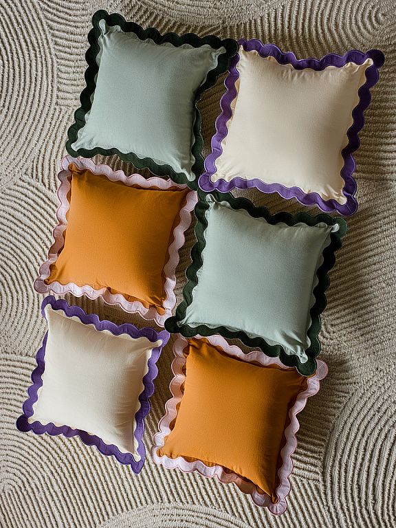 Чехол на подушку с контрастным кантом розового цвета из коллекции Trendy Ruffles привнесет свежий акцент в оформление гостиной, спальни или зоны отдыха. Текстиль с волнистой отделкой, напоминающей изящные раковины морских гребешков, стал ярким элементом стиля Ар Деко – и сейчас возвращается в моду, появляясь в самых актуальных интерьерных решениях.