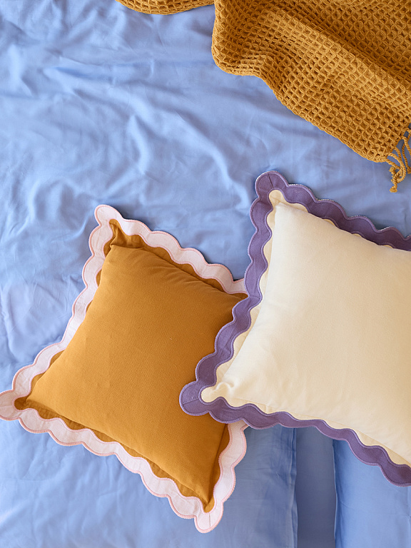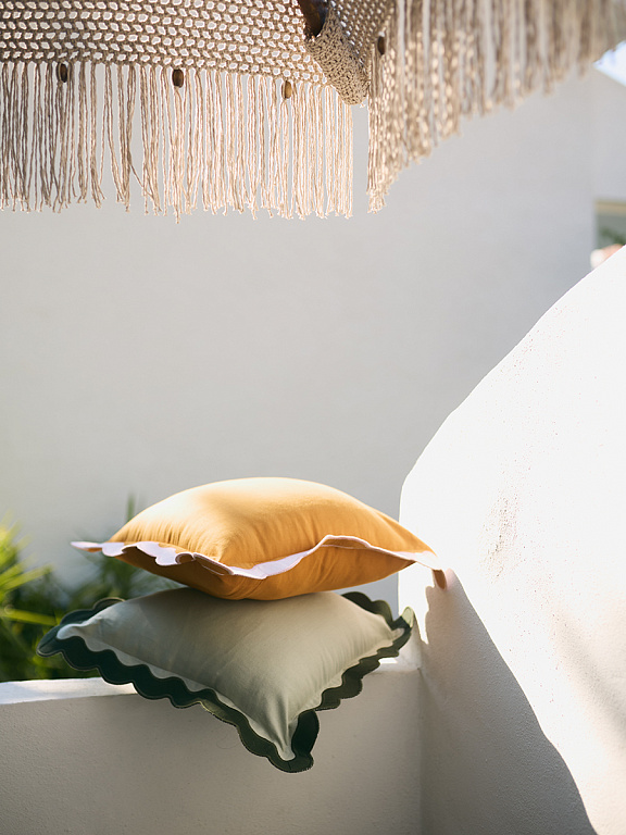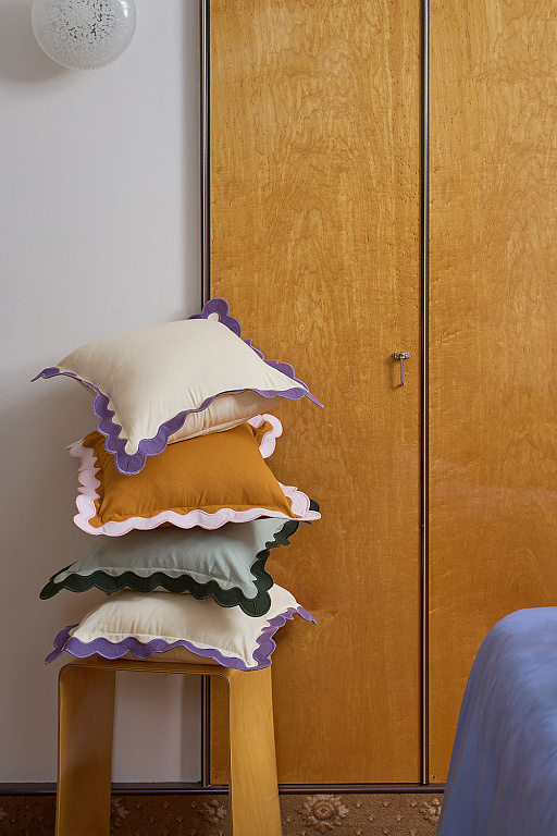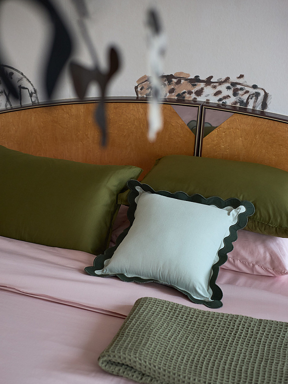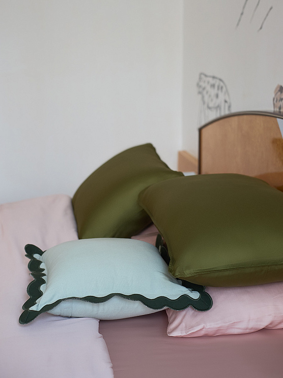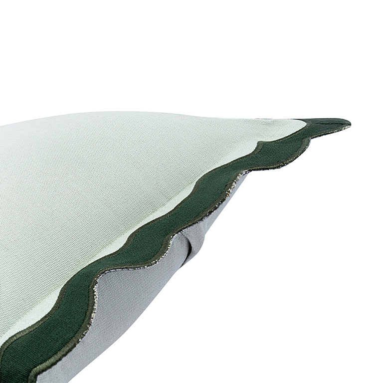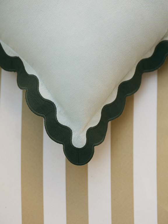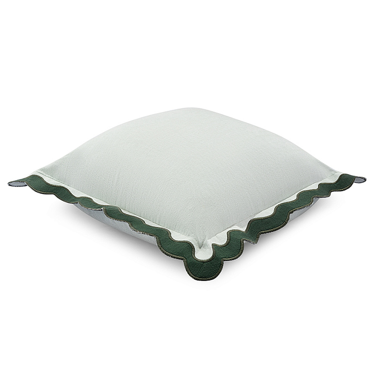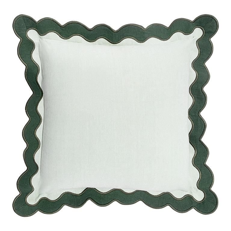 Чехол на подушку с контрастным кантом зеленого цвета из коллекции Trendy Ruffles привнесет свежий акцент в оформление гостиной, спальни или зоны отдыха. Текстиль с волнистой отделкой, напоминающей изящные раковины морских гребешков, стал ярким элементом стиля Ар Деко – и сейчас возвращается в моду, появляясь в самых актуальных интерьерных решениях.