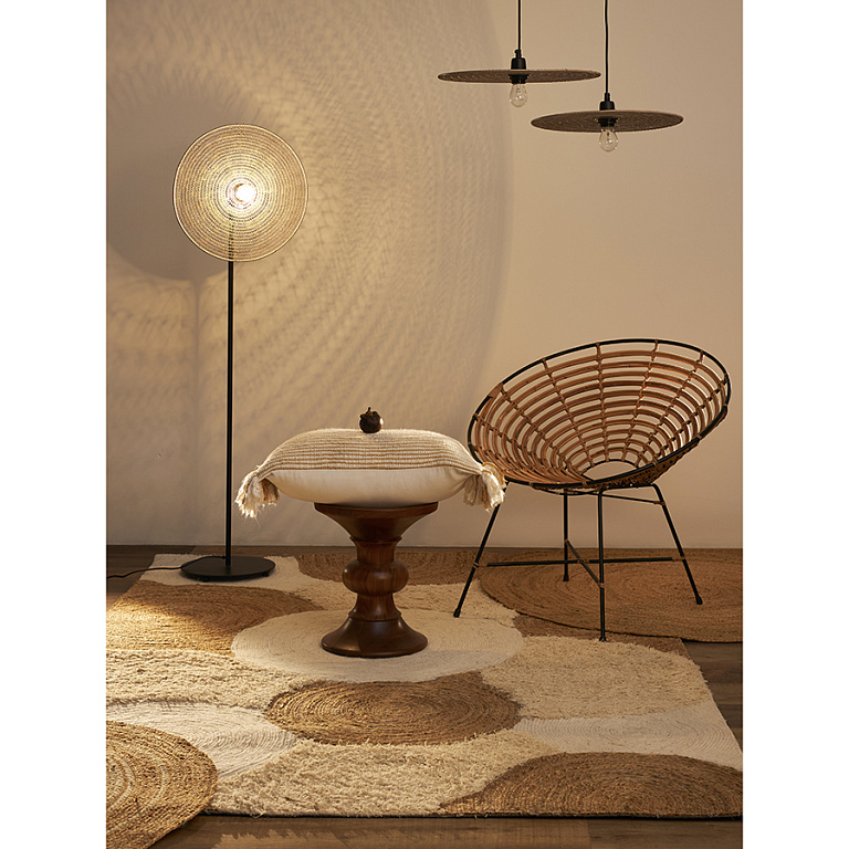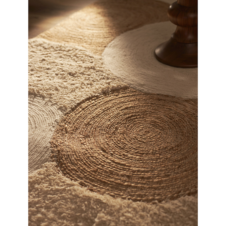 Небольшая разница в цвете и фактуре джута и переработанного текстиля в разных частях ковра делает каждое изделие уникальным. У новых напольных покрытий может присутствовать естественный запах, он абсолютно безопасен и при частом проветривании быстро исчезает. После вскрытия упаковки ковер в течение некоторого времени может сохранять элементы деформации вследствие долгого нахождения в скрученном виде, но уже через 1-2 недели он полностью выпрямится. Ковер может выцветать под воздействием прямых солнечных лучей. Рекомендуем периодически менять расположение изделия, чтобы цвет менялся равномерно.