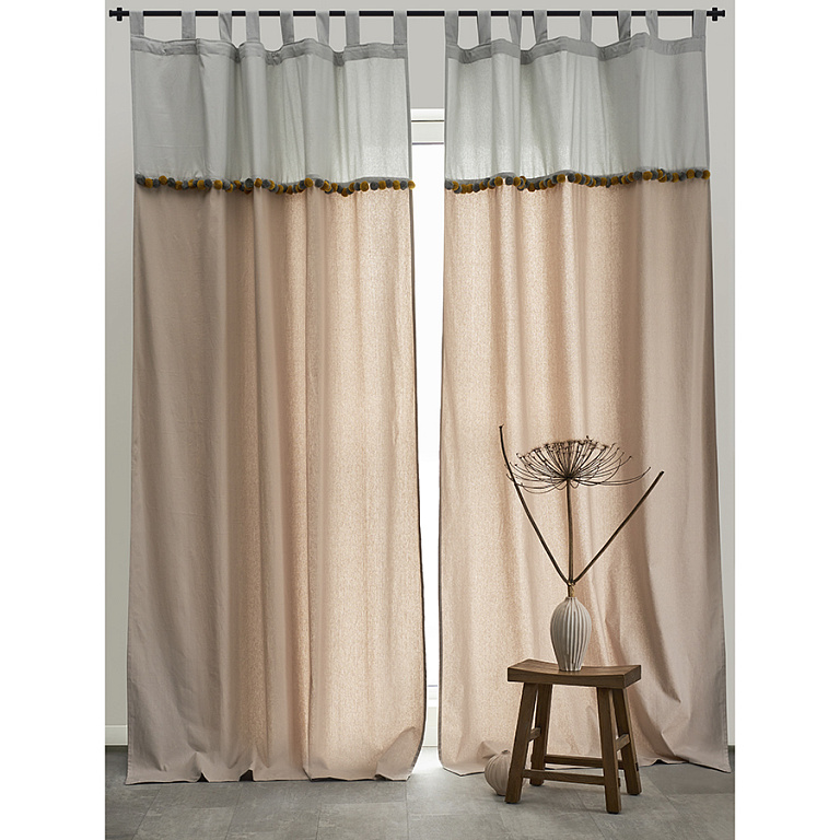 Штора из хлопка с помпонами бежево-серого цвета из коллекции Essential поможет выразить собственный стиль в декоре, освежить интерьер и создать в помещении легкую, непринужденную атмосферу.