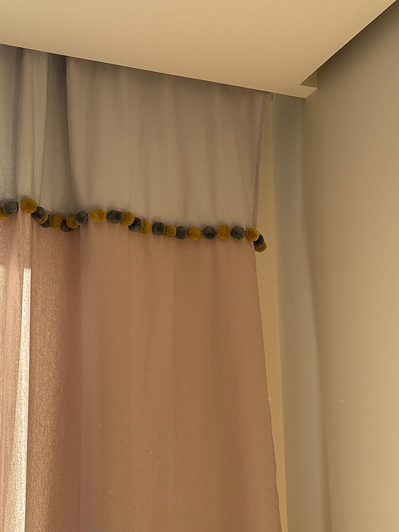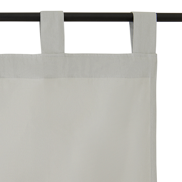- По верхнему краю шторы предусмотрена лента с петельками для крепления на крючки и текстильные петли, которые позволяют легко разместить ее на карнизе без использования дополнительного крепежа.