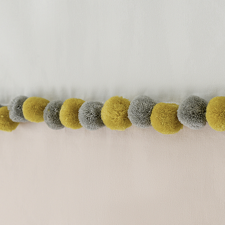 - Декоративный акцент в виде контрастных помпонов делает дизайн интересным и запоминающимся.