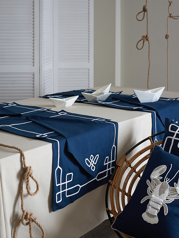 Дорожка на стол Navy story из коллекции Sea treasures – оригинальный текстильный аксессуар, который привнесет в сервировку нотки морской свежести и превратит вашу кухню или столовую в уютное и стильное пространство.