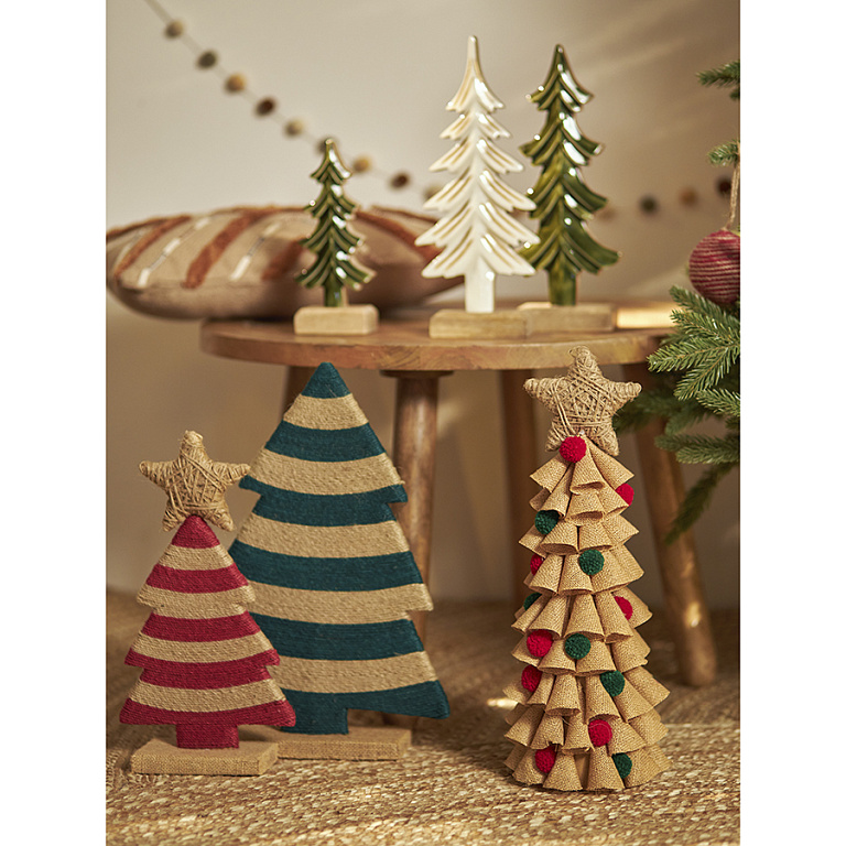 Декор Classics из джута и гофрированного картона из коллекции New Year Essential привнесет в интерьер ностальгические нотки и напомнит о временах, когда новогодние игрушки создавались вручную и носили особенный характер. Эта необычная ёлка привлечет к себе внимание и легко поместится на столе, подоконнике или полке. Украшение непременно понравятся ценителям предметов из натуральных материалов и поклонникам стиля рустик.
