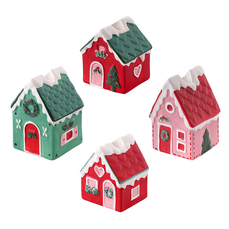 - Домики идеально смотрятся в качестве моно-декора или в композиции с елочными шарами, мишурой и другими тематическими элементами дизайна.