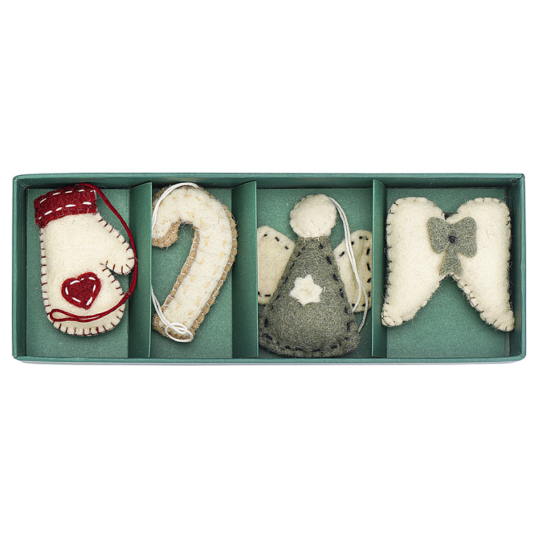 Материал: фетр. Размеры: 9х3х9 см; 5х3х8 см; 7х3х7 см; 6х3х9 см. Количество украшений в наборе: 4 шт.
