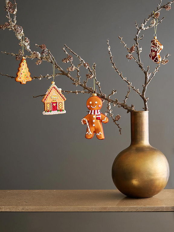 Набор елочных украшений Ginger celebration коллекции New Year Essential словно наполнен благоуханием ароматов корицы и духом рождественских праздников. Аппетитные пряничные фигурки, украшенные цветной глазурью, еще раз напомнят о вкусных лакомствах и добрых новогодних традициях.