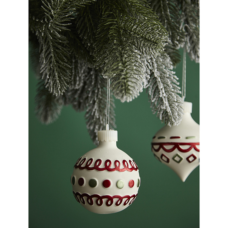 С набором украшений Festive Embroidey из коллекции New Year Essential ваша ёлка превратится в настоящее произведение искусства. Эти игрушки из фарфора эффектно выделяются на фоне других не только благодаря изящному дизайну, но и за счет наличия подсветки. Они, словно волшебные артефакты, наполняют пространство ощущением радости в ожидании новогодних чудес.