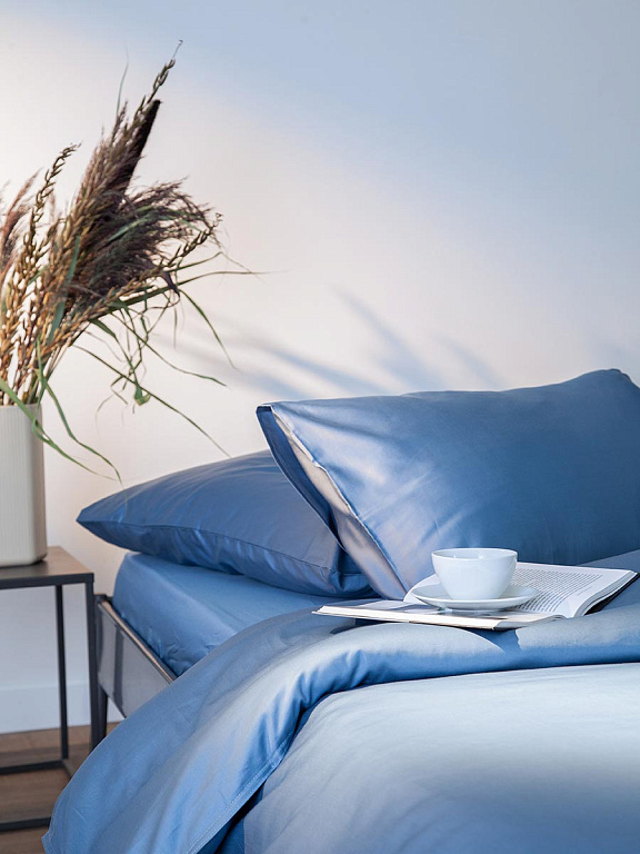 Простыня на резинке из премиального сатина джинсово-синего цвета из коллекции Essential подчеркнет ваш изысканный вкус и любовь к натуральным материалам. Такое постельное белье сделает любую спальню более стильной, современной, обеспечит уют и комфорт во время отдыха и сна в любое время года.