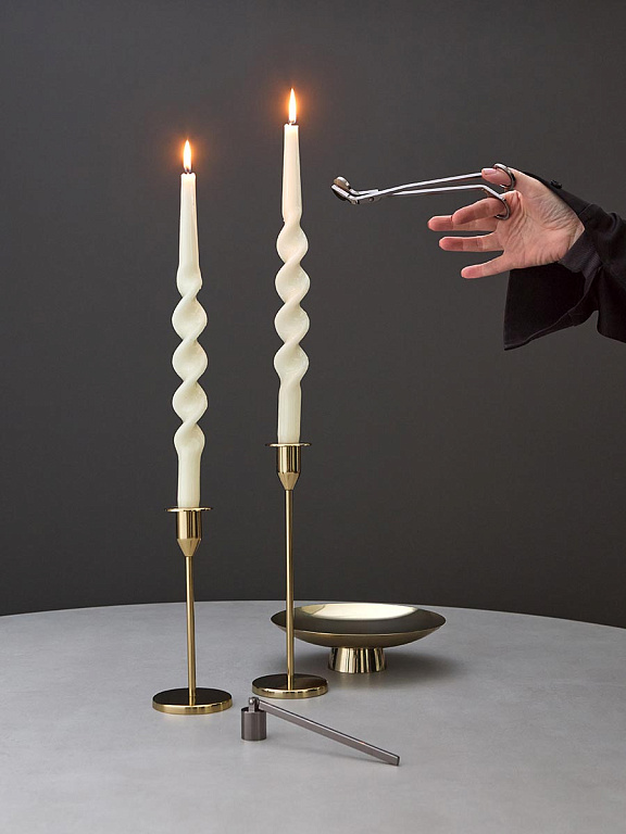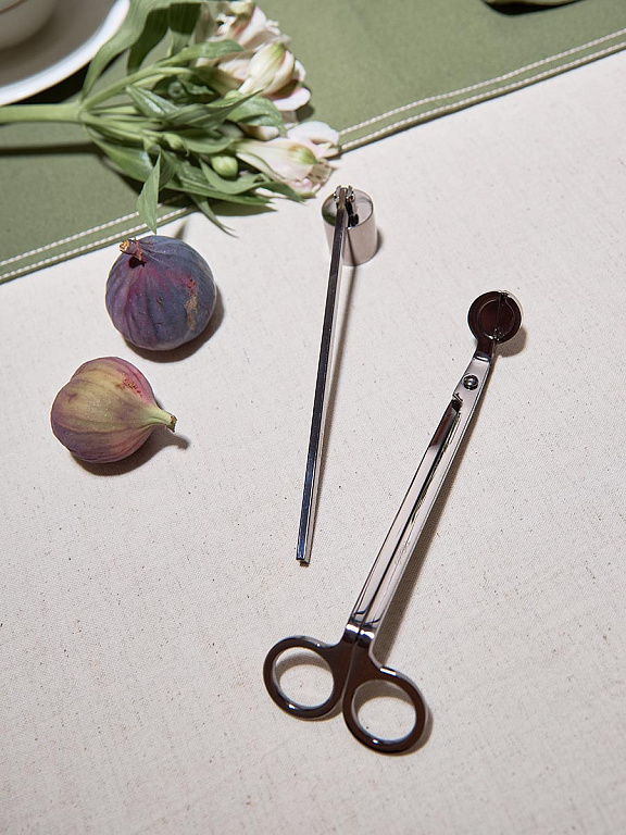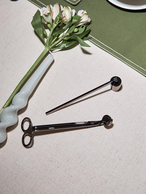 Набор аксессуаров для свечей из коллекции Essential создан для ценителей уюта и атмосферного освещения. В комплект входят ножницы для подрезания фитиля и специальный гаситель, который помогает безопасно погасить пламя без дыма и искр.