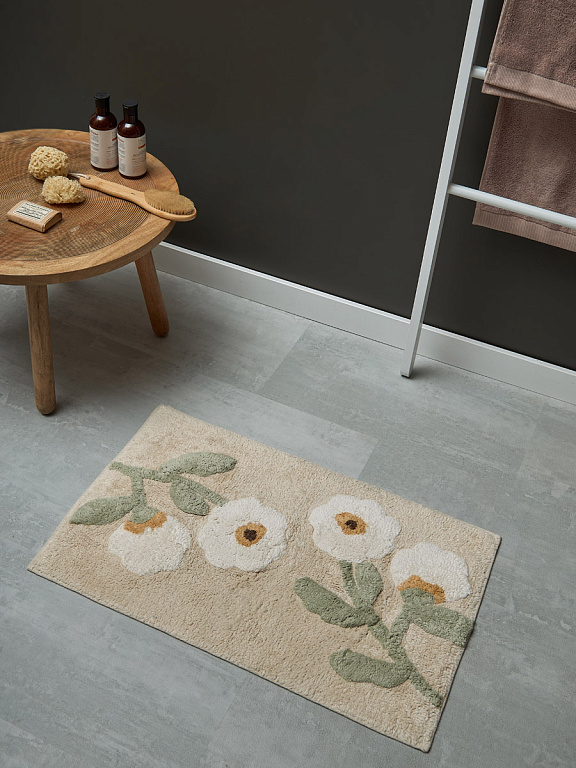 Коврик для ванной Flowers из коллекции Ethnic поможет создать в помещении уютную, комфортную атмосферу. Контрастные цвета и стильный флористический дизайн изделия подчеркнут лаконичность интерьера, а мягкая текстура материала подарит массу тактильно приятных ощущений после водных процедур.