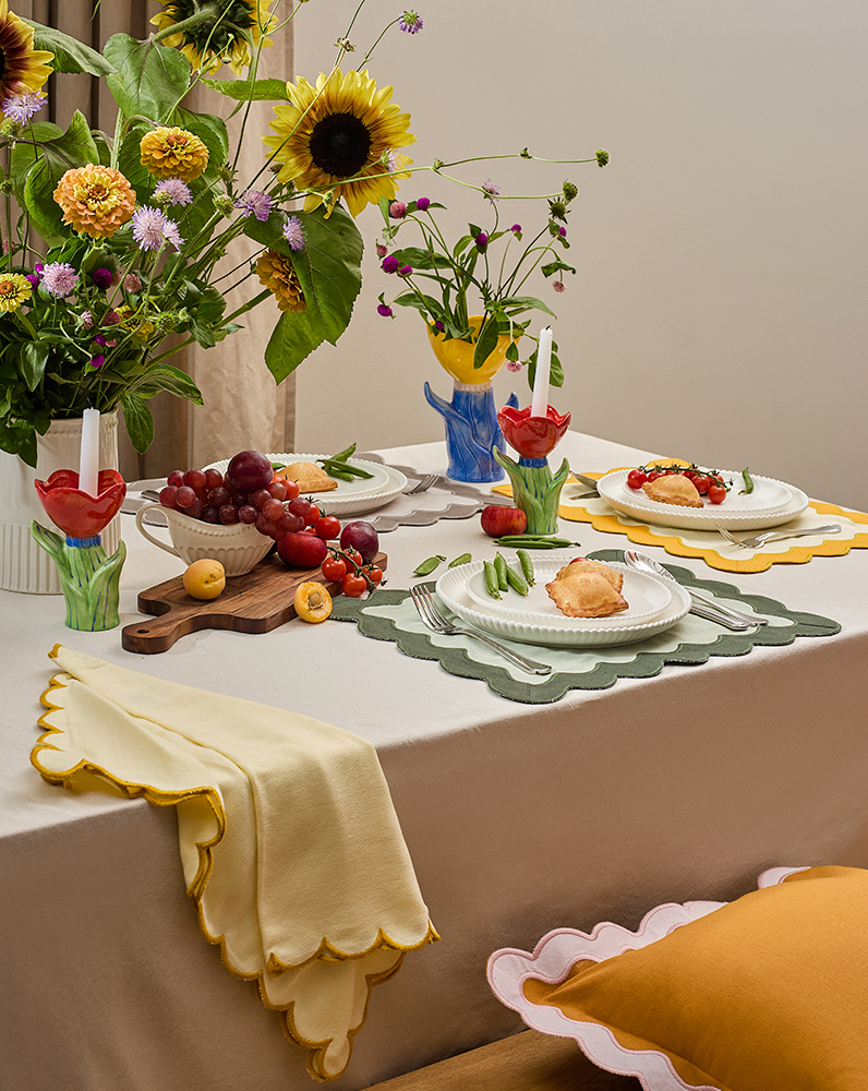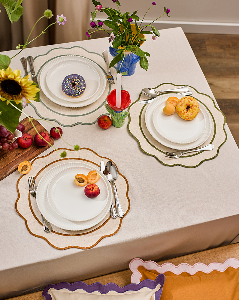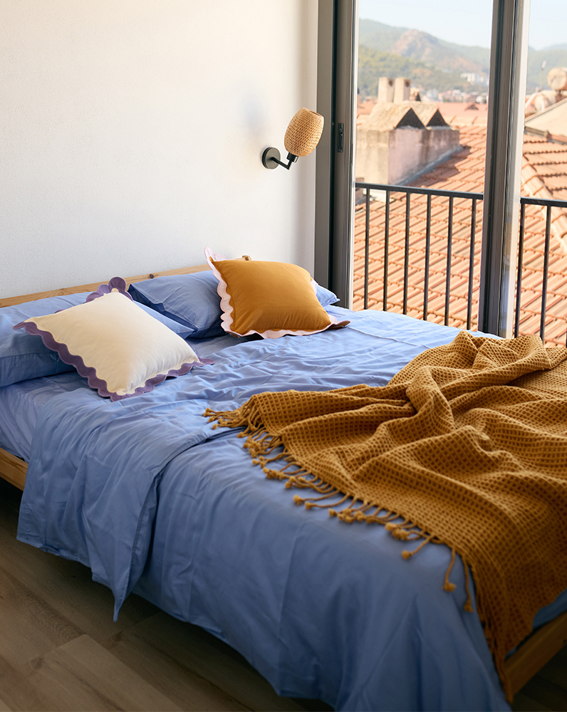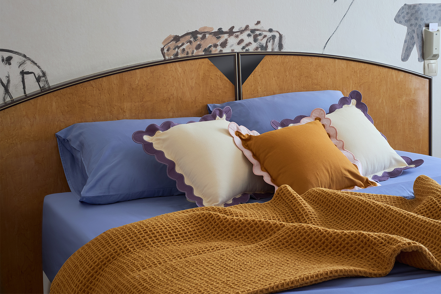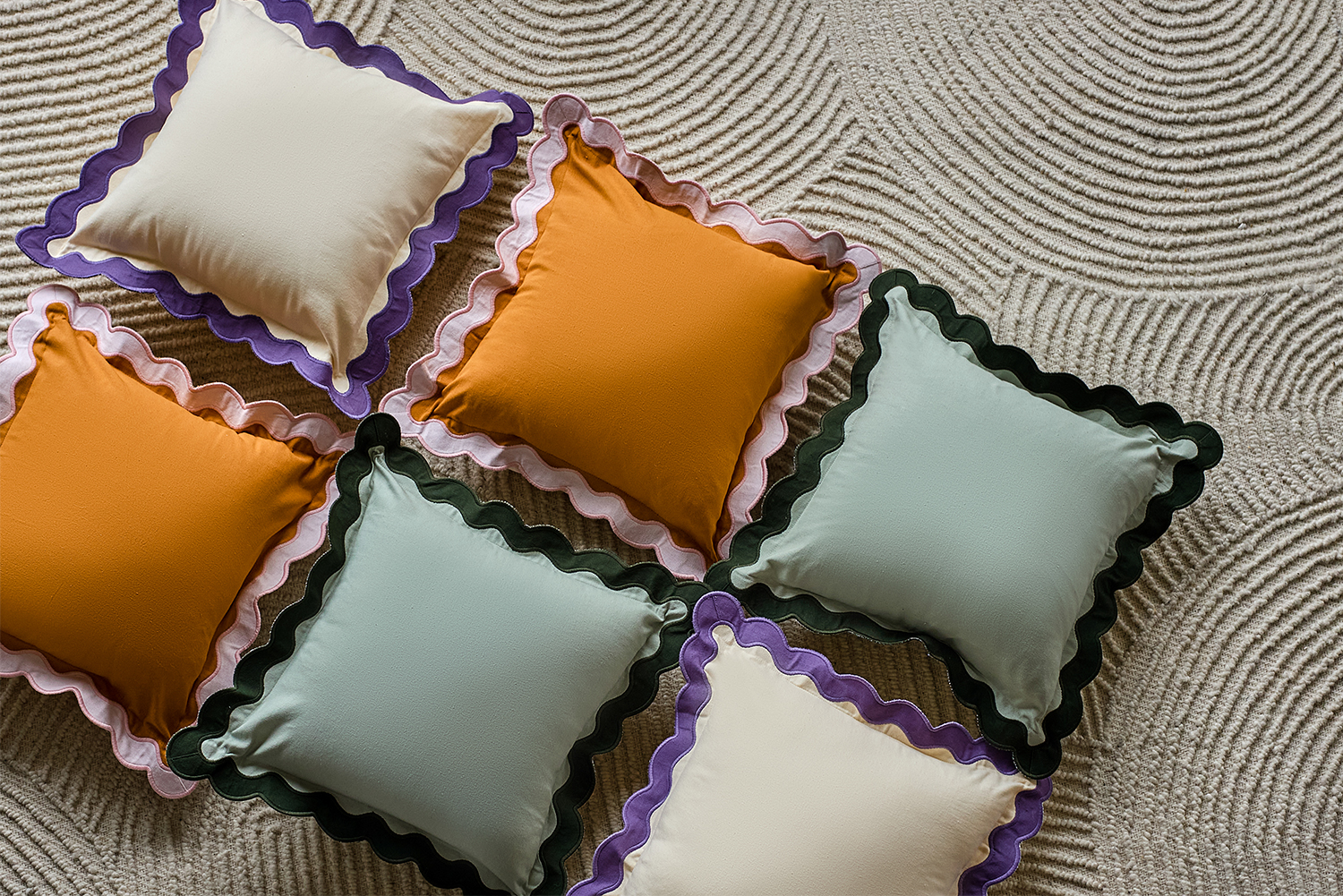 Trendy Ruffles — это текстиль с изящной волнистой отделкой, напоминающей раковины морских гребешков. Такой паттерн можно встретить в самых разных эпохах и стилях — например, в интерьерах ар деко или сканди. При этом в любом пространстве легкая волна всегда работает одинаково: создает уютный, расслабленный ритм и добавляет игривой мягкости.